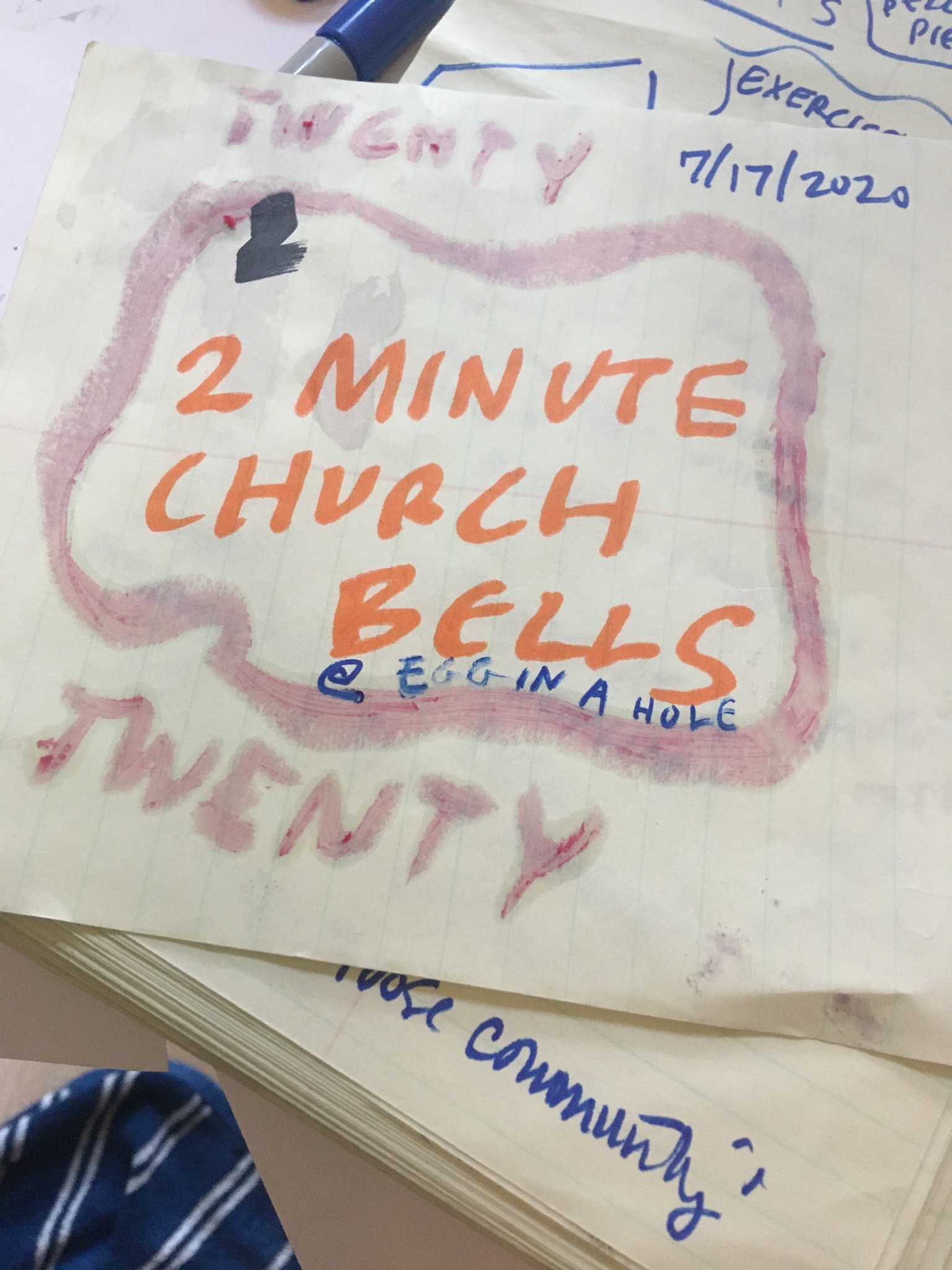 Drawing-Two minute church bells performance from 2020 rural house,first responders cheer in the woods.