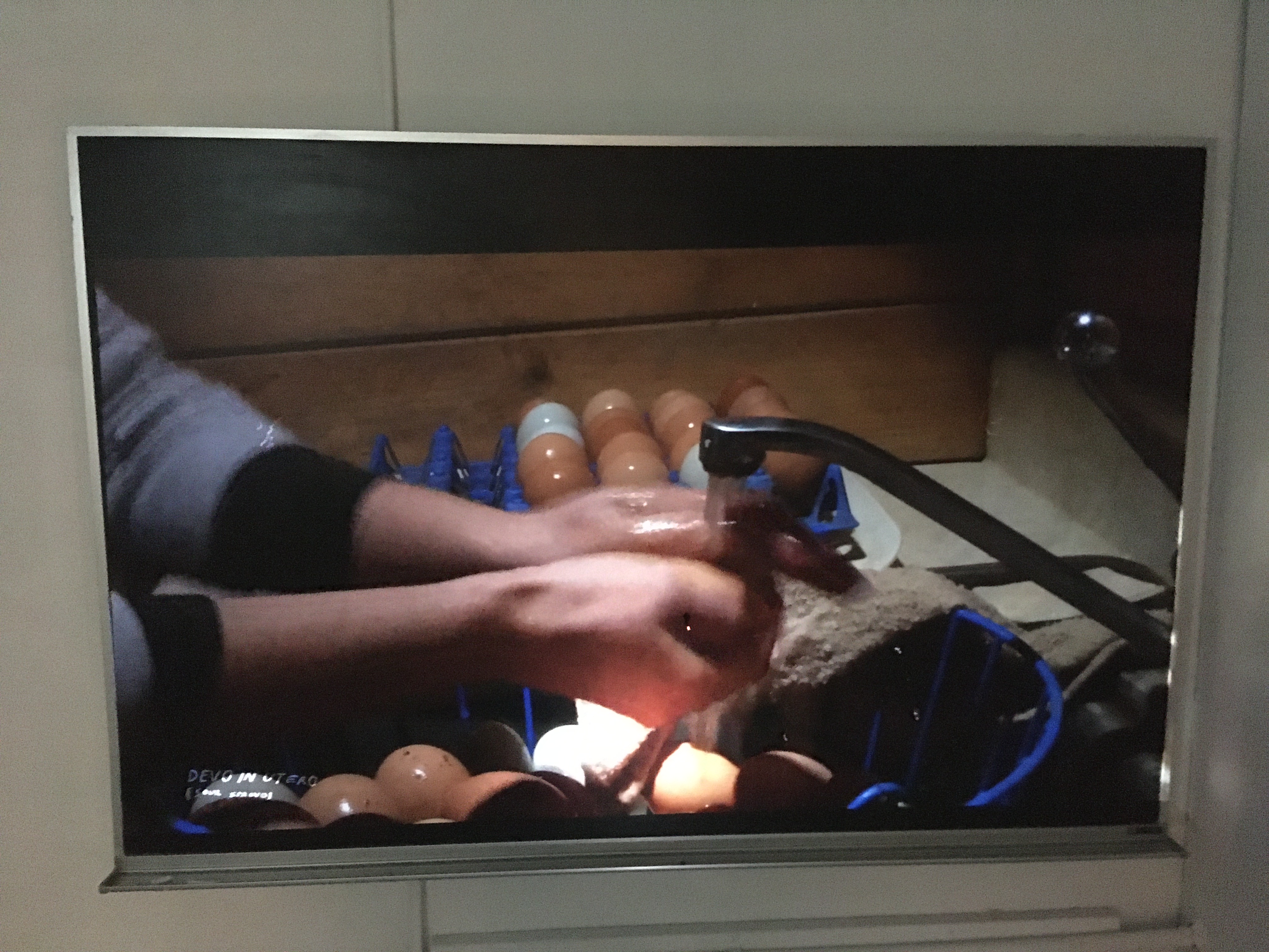 Marissa washes eggs at the farm stand, a snail glides across the sidewalk- it’s shell not fully formed. We see its heart beat. A worm is stuck in asphalt struggling to burrow into a surface it wasn’t meant to.